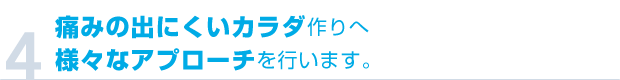まず痛みを減らし、同時に原因の改善にも努めます。