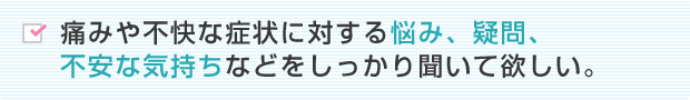 身体の不快感や痛みなど、早目にご相談されると解決の糸口がきっと見つかると思います。