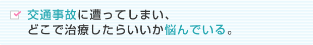 交通事故に遭われてお悩みの方は、まずは安城接骨院でご相談されることをお勧め致します。