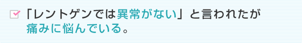 画像に映らない痛みもたくさんあります。まずは症状をお聞かせください。
