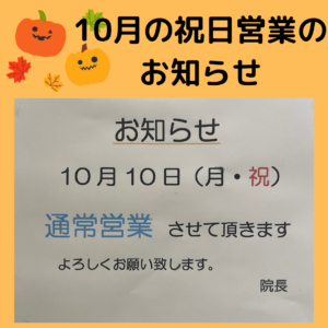 10月の祝日営業のお知らせです!