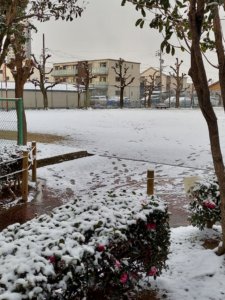 今日は安城市も珍しく雪が降り、少し積もっています。